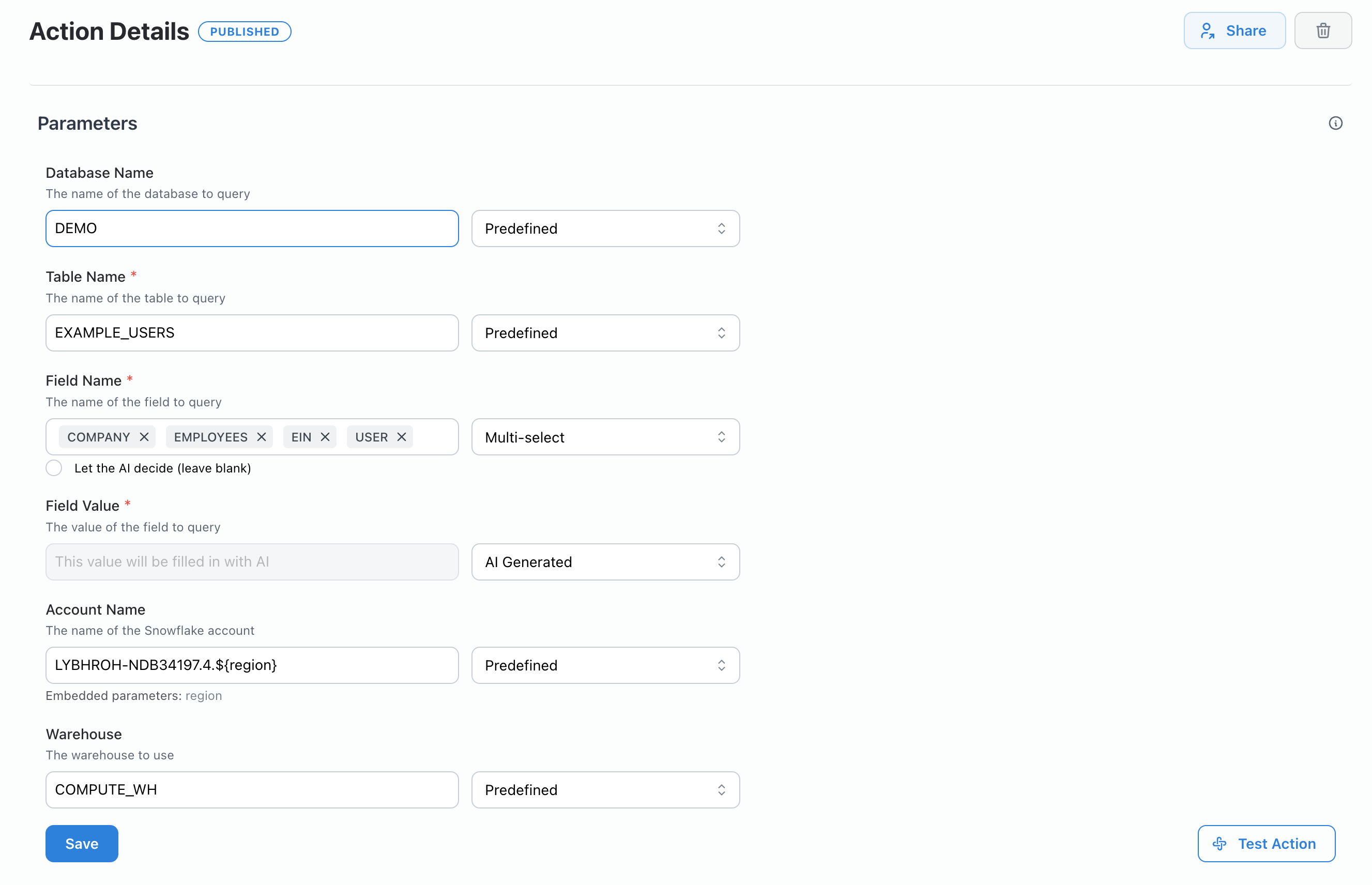 Advanced tip: if you want part of the parameter to be predefined, and let AI decide the rest, you can set the parameter to “Predefined”, then embed the AI-decided parts using the ${PARAM_NAME} format.
